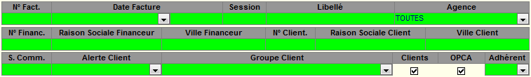 | Case OPCA | pour n'afficher que les factures dont le financeur est un OPCA |