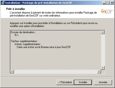 Durant l'installation, le dossier C:\GESOCF7 est créé automatiquement.