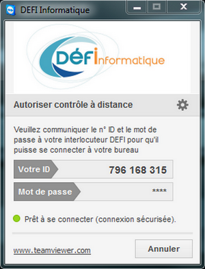 La télémaintenance consiste à prendre le contrôle d'un ordinateur distant via le réseau internet. DEFI Informatique utilise Team Viewer pour se connecter à votre ordinateur.