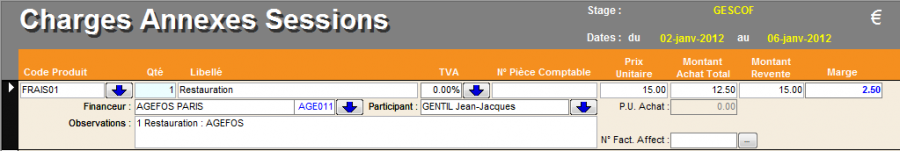 Vous avez la possibilité de saisir les charges imputables à votre session, en plus du coût des intervenants.