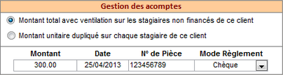 Ces options fonctionnent uniquement en INTER lorsque la case “Dupliquer ce financement à tous les stagiaires NON FINANCES de ce client” est cochée.