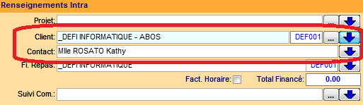 • en INTRA, c'est le lieu Chez le client qui reprend les coordonnées du client.
