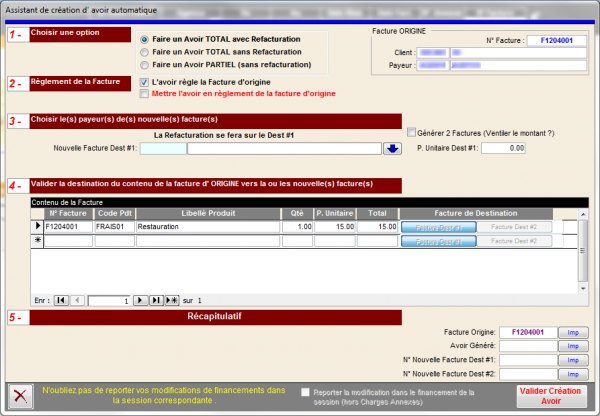 | Etape 2 | cochez L'avoir règle la Facture d'origine (par défaut) |