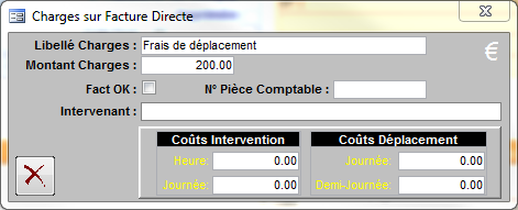 Cet écran permet d'enregistrer des charges d'une prestation facturée directement. Utile pour les statistiques.