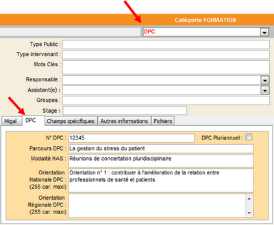 DPCdans le champ Catégorie Formation - Remplissez les champs du cadre DPC :