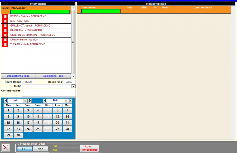 Suivi IndisponibilitésAffiche toutes les indisponibilité de tous les formateurs.