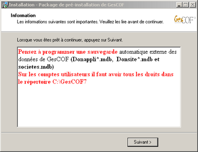 Durant l'installation, le dossier C:\GESOCF7 est créé automatiquement.