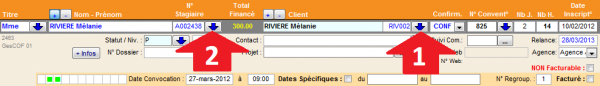 | N° Dossier | Champ permettant de saisir une information supplémentaire relative à l'inscription du stagiaire et pouvant apparaître sur la facture. |
