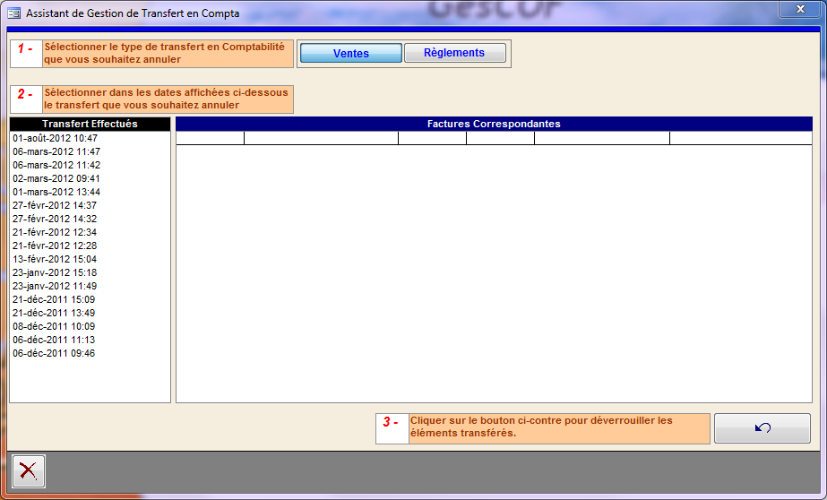 Cet écran permet d'annuler les transferts dans GesCOF.