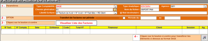 Toutes les factures visualisées dans l'étape précédente seront transférées. Pensez à faire une sauvegarde de vos données comptables.