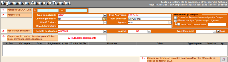 Vous pouvez transférez les règlements de factures transférées (c'est-à-dire des factures dont la case Transférée est cochée).