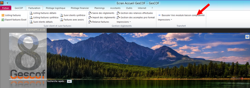 • Ouvrez le menu Facturation et cliquez sur Basculer vers Module Liaison Comptabilité.