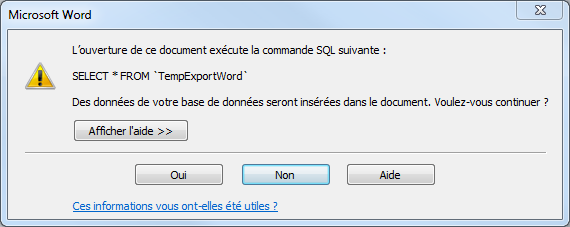3- Word® s'ouvre. Cliquez sur ''OUI' au message suivant :