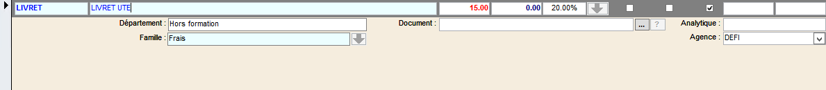 Le « Livret UTE » est créé dans les produits hors formation avec un coût de revente :