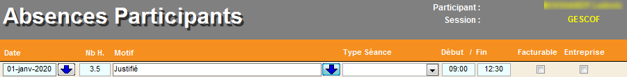 | Saisie des absences du participants. |