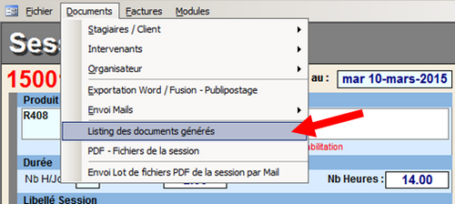 Pour y accéder, depuis la session, ouvrez le menu Documents puis Listing des documents générés.