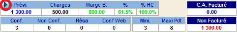 | Résa | Nombre de réservation en attente (réalisée à partir du module commercial). |