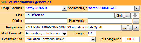 | Suivi Impressions Documents Participants de la session | Pemet d'indiquer l'impression des documents participant par participant pour les confirmations d'inscrirption, les conventions, les convocations, les attestations, les certificats, les badges, les chevalets, les fiches d'évaluation, les letters d'accompagnement de conventions, convocations et attestations. |