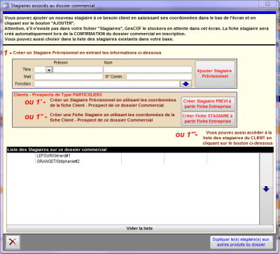 • 1'' - créer une fiche stagiaire à partir de la fiche client (uniquement pour les particuliers)