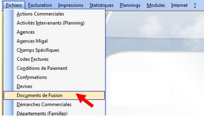 2- Dans GesCOF, ouvrez le menu Fichiers puis Documents de fusion
