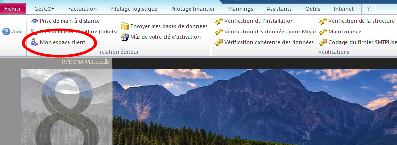 • Vous pouvez accéder à votre espace client directement depuis GesCOF en ouvrant le menu ? puis en cliquant sur Mon espace client