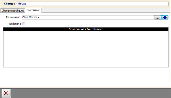 Depuis l'écran des fournisseurs (menu Fichier depuis l'écran d'accueil), vous pouvez consulter l'historique des charges associées aux fournisseurs.