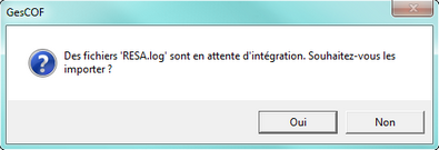 • A l'ouverture, GesCOF vérifie la présence de fichiers .log et vous le signale. Le message suivant s'affiche alors :