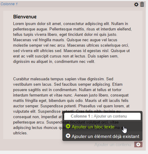 - Ajouter un bloc texte : vous créez un nouveau bloc de contenu que vous saisissez.