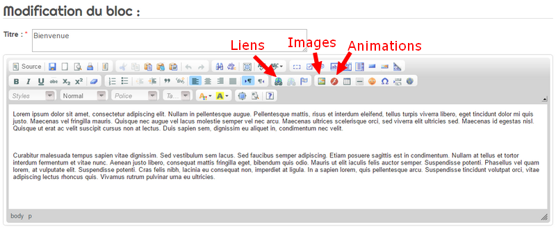 - d'ajouter des liens de téléchargement (documents pdf par exemple)
