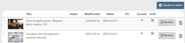 - Pour créer un article, cliquez sur Ajouter un article