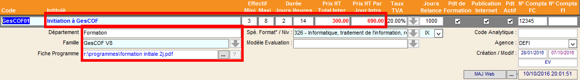 2- Vérifiez les informations qui seront publiées : intitulé, durée, prix, famille, département, programme de formation