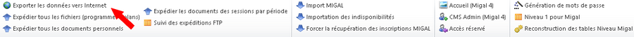 - Pour mettre à jour les programmes et plan d'accès, ouvrez le menu Internet et cliquez sur Exporter les fichiers